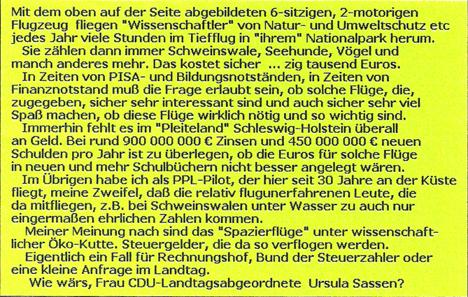 Wann hört endlich          das Gefasel vom          nicht versteuerten         Flugbenzin auf ?